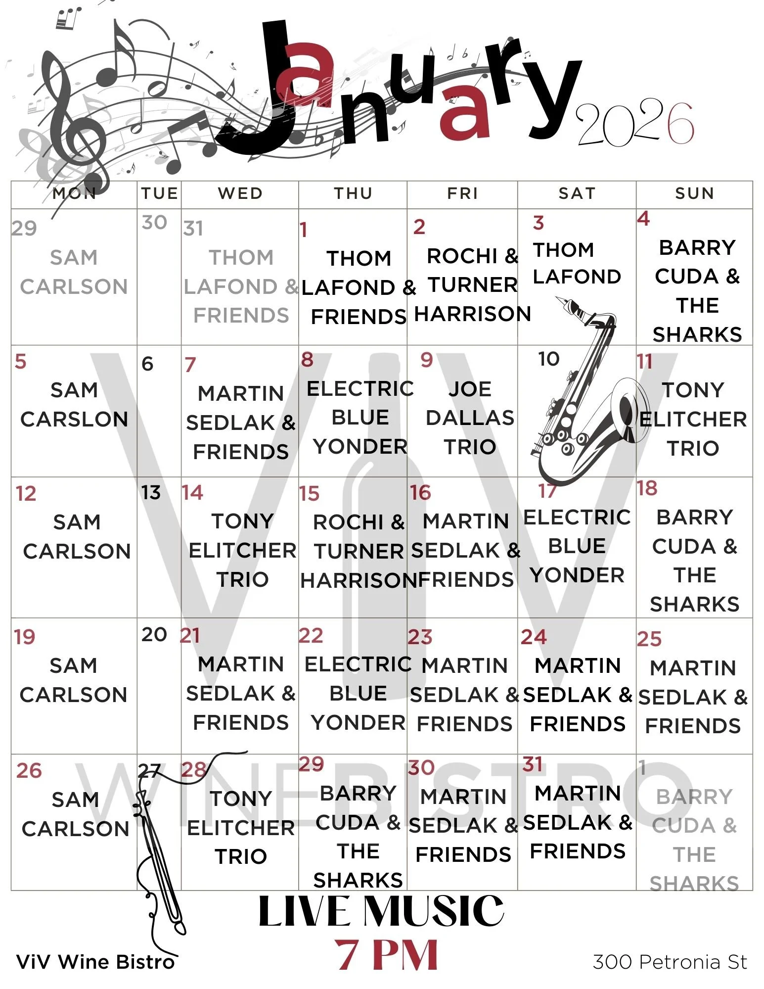 Enjoy the soulful sounds of Sam Carlson, Richie & Jerome as they fill the bistro with live music.
